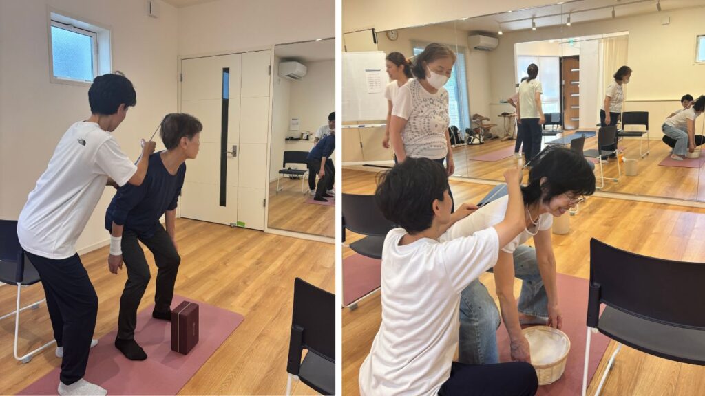 今回は『物を持つ・運ぶ』動作に着目し、動作時の腕と体幹のつながり、連動を体感して頂きました!