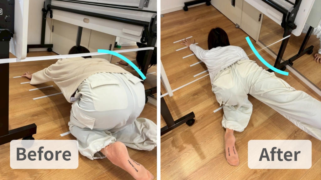 - 上半身だけでなく、体幹、下半身を意識した動かし方に変化